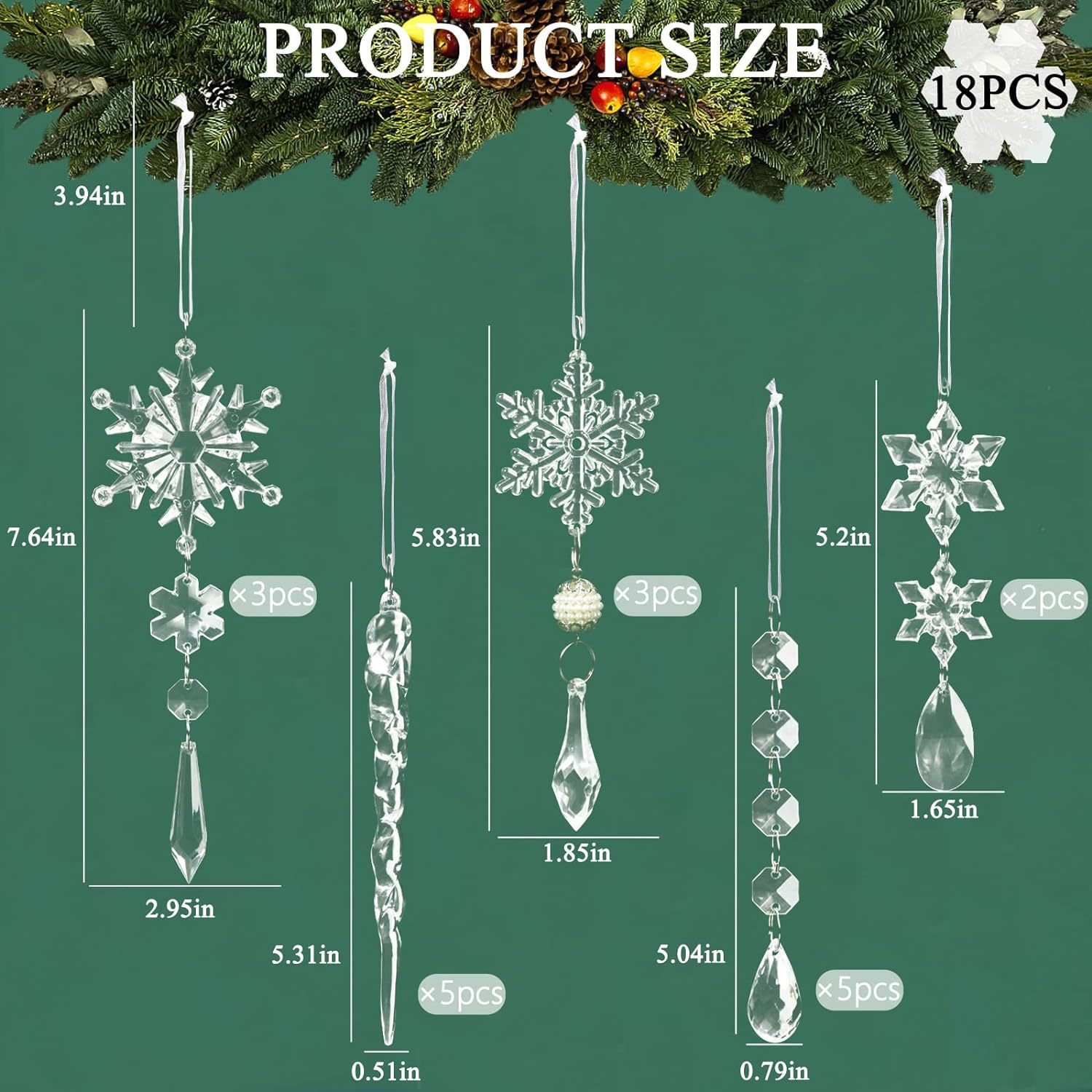 Pakke: Du vil motta en verdifull pakke med 18 stykker blå akryljulepynt i 5 stiler, inkludert 8 stk unikt designede snøfnuggpynt (5,2", 5,3" og 7,64"), 5 stk 5,3" krystallimpornamenter og 5 stk 5" perlegirlander.